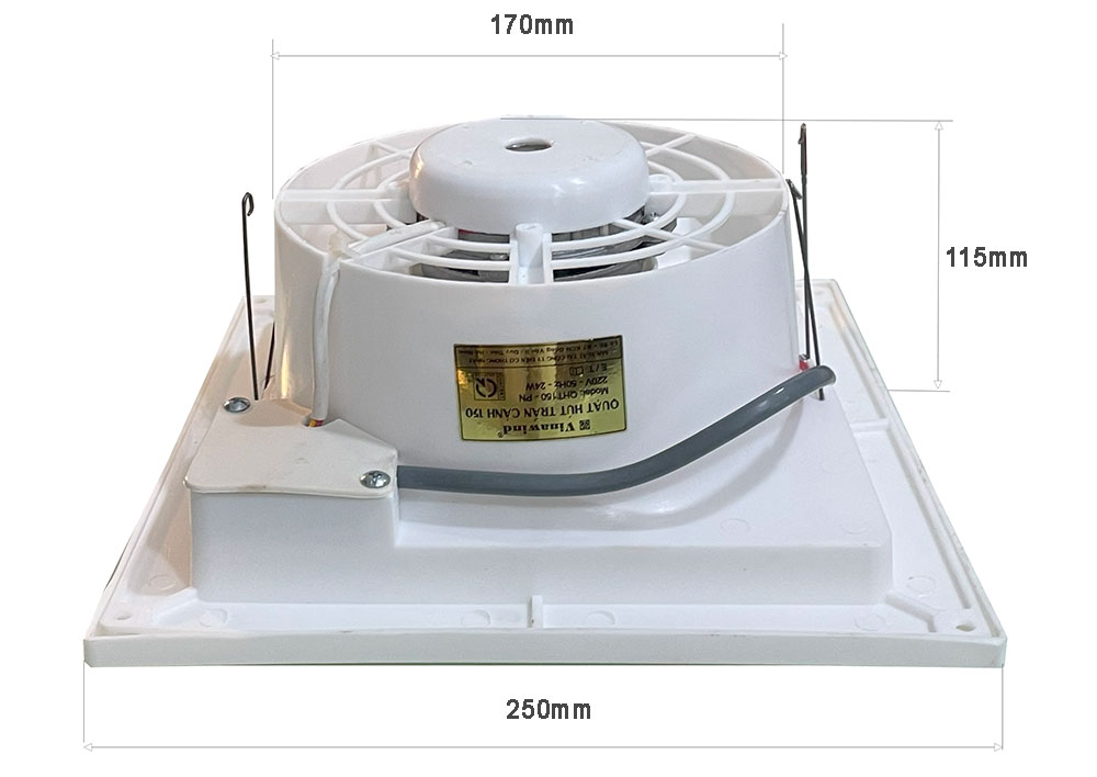 Quạt hút với công suất 24W, chạy ổn định, vận hành êm, độ ồn thấp được dùng trong nhà vệ sinh, phong ngủ, phòng khách, phòng họp, văn phòng làm việc, cửa hiệu, nhà bếp…
