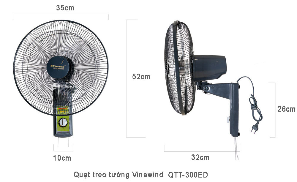 | Tên sản phẩm | Quạt treo tường Vinawind QTT-300EĐ |